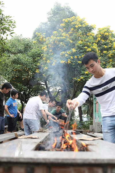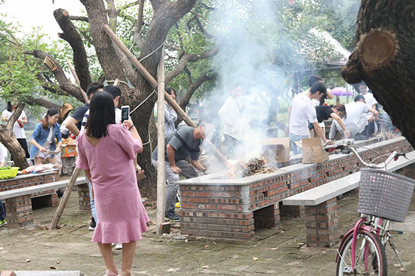 一大早,迎著清晨的陽光,小伙伴分批駕車到達燒烤地點。平日里因工作繁忙難以相聚的小伙伴,三五結群的說著生活中的趣事??戳珠g風光,聽鳥語蟬鳴,臨近中午,燒烤活動開始,大家各自分工準備食材、架烤箱、切菜、串肉等,忙得不亦樂乎,煙熏味夾雜著食物的香味,融進了大家的歡聲笑語中。